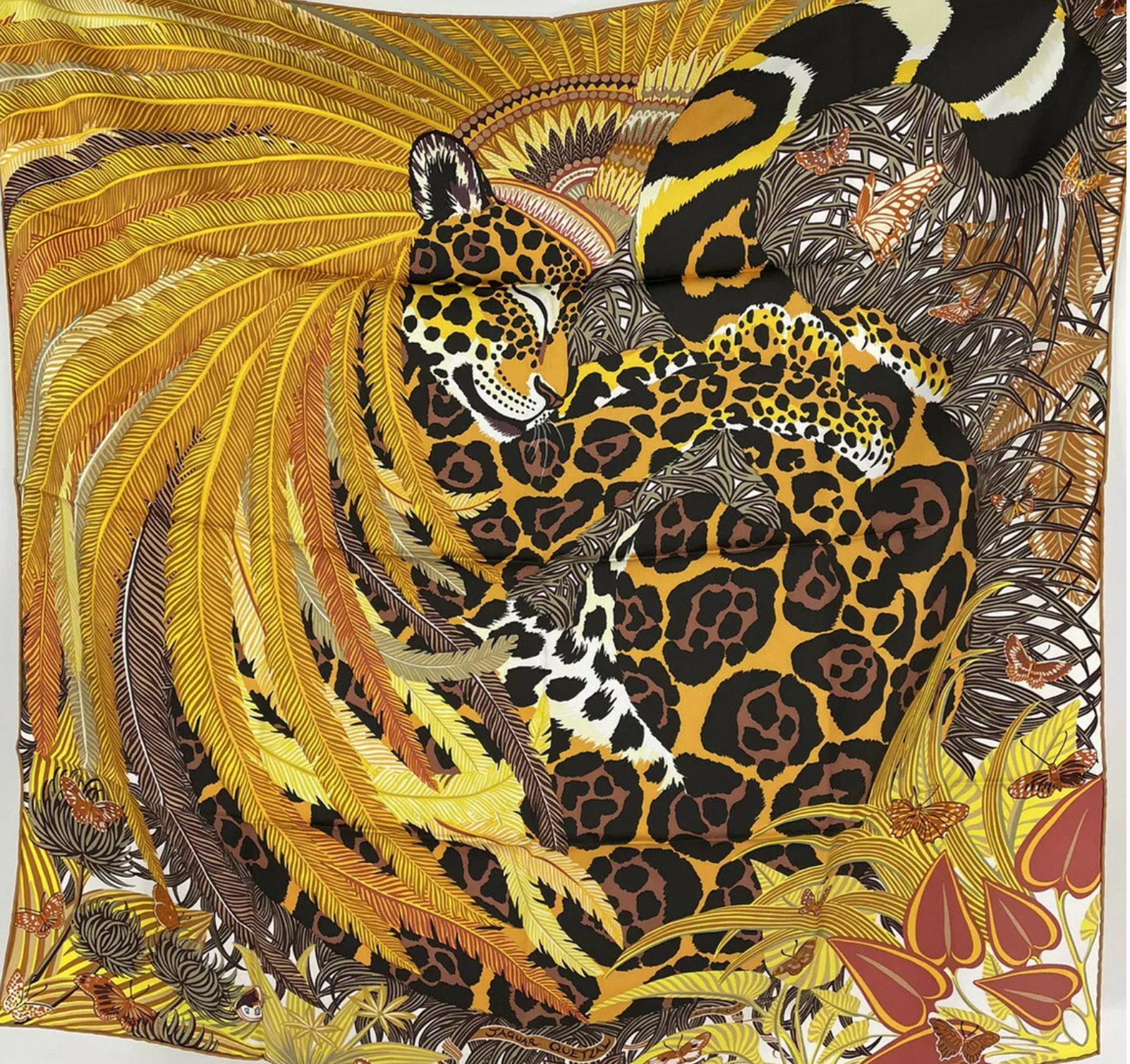 The "jaguar warriors" of the pre-Columbian Astec civilisation inspired Alice Shirley to dream up this big cat and its superb headdress, which is loosely inspired by the famous Penacho conserved in the Museum of Ethnology, Vienna. Made of feathers and semi-precious stones, this enormous headdress owes its beauty to the brilliance of more than 400 quetzal feathers. The quetzal is a tropical bird that lives in Central and South America, whose Aztec means "long green feathers". The designer, who is passionate about the animal world, gives us a tender portrait: a sleeping jaguar "dreaming of freedom".